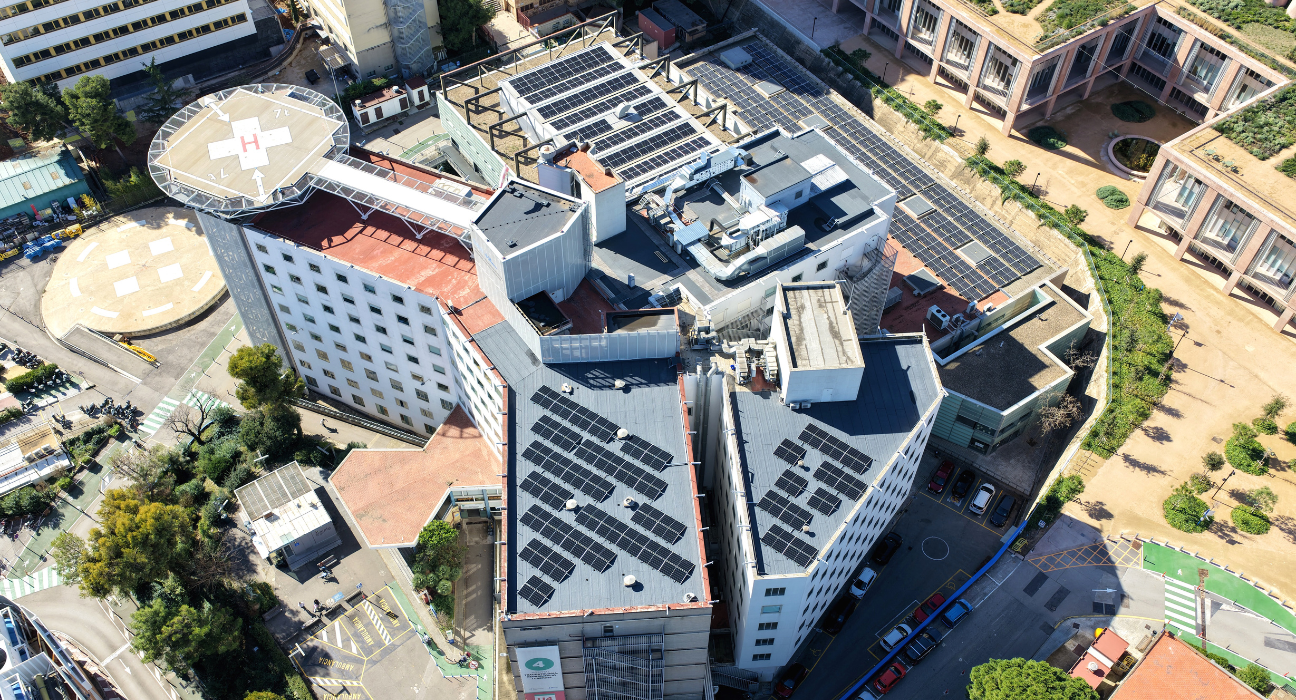 L’Hospital Universitari Vall d’Hebron ha posat en funcionament un total de 1.450 plaques fotovoltaiques distribuïdes per les cobertes de diversos edificis del Campus. La nova instal·lació, que ocupa una superfície de 4.000 metres quadrats i té una potència màxima de 870kWp, és una de les més grans desplegada fins ara en un centre sanitari públic a Catalunya.